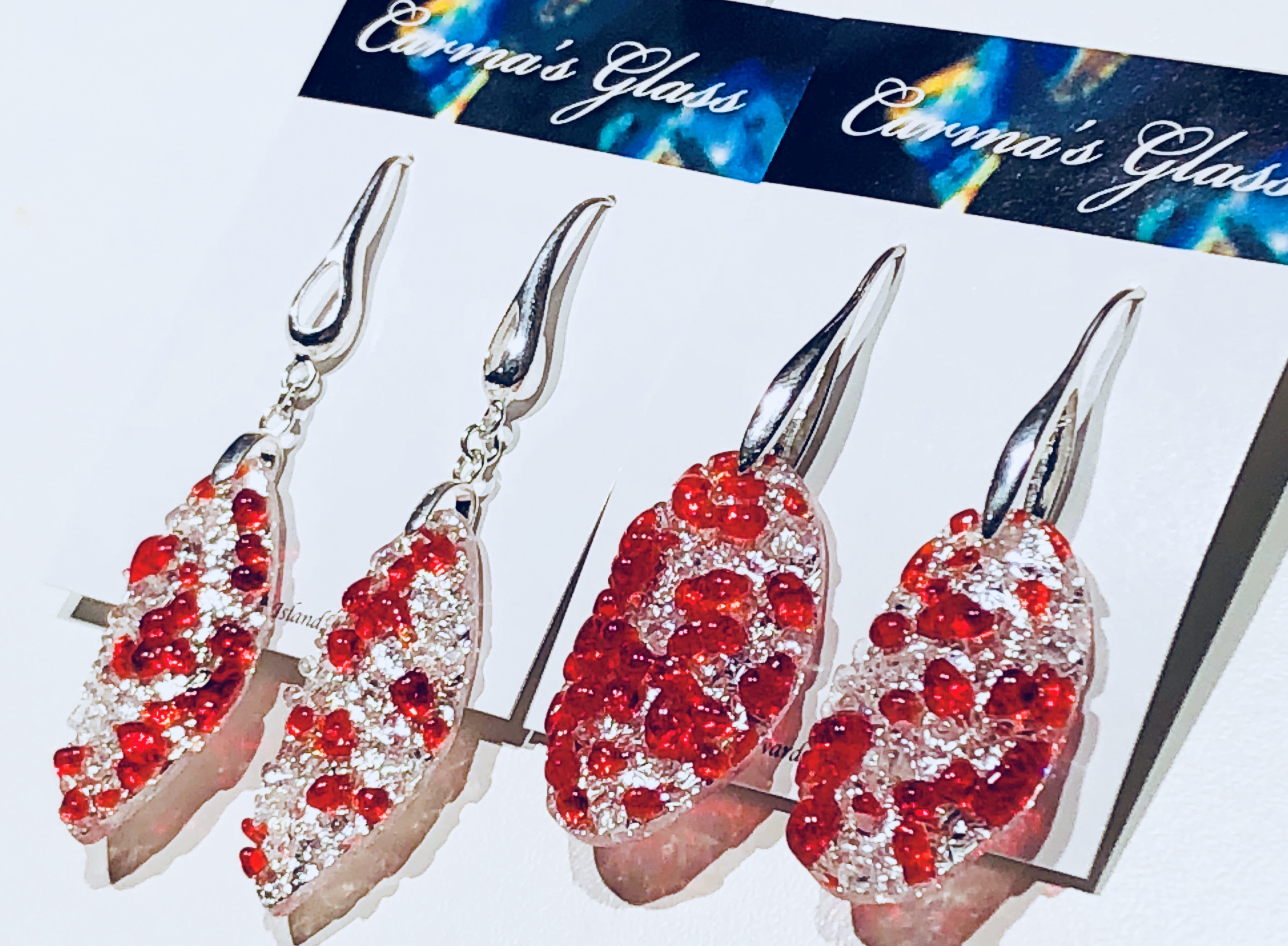Earrings finished with .925 sterling silver components with sterling ear-wires / posts & clutches.
