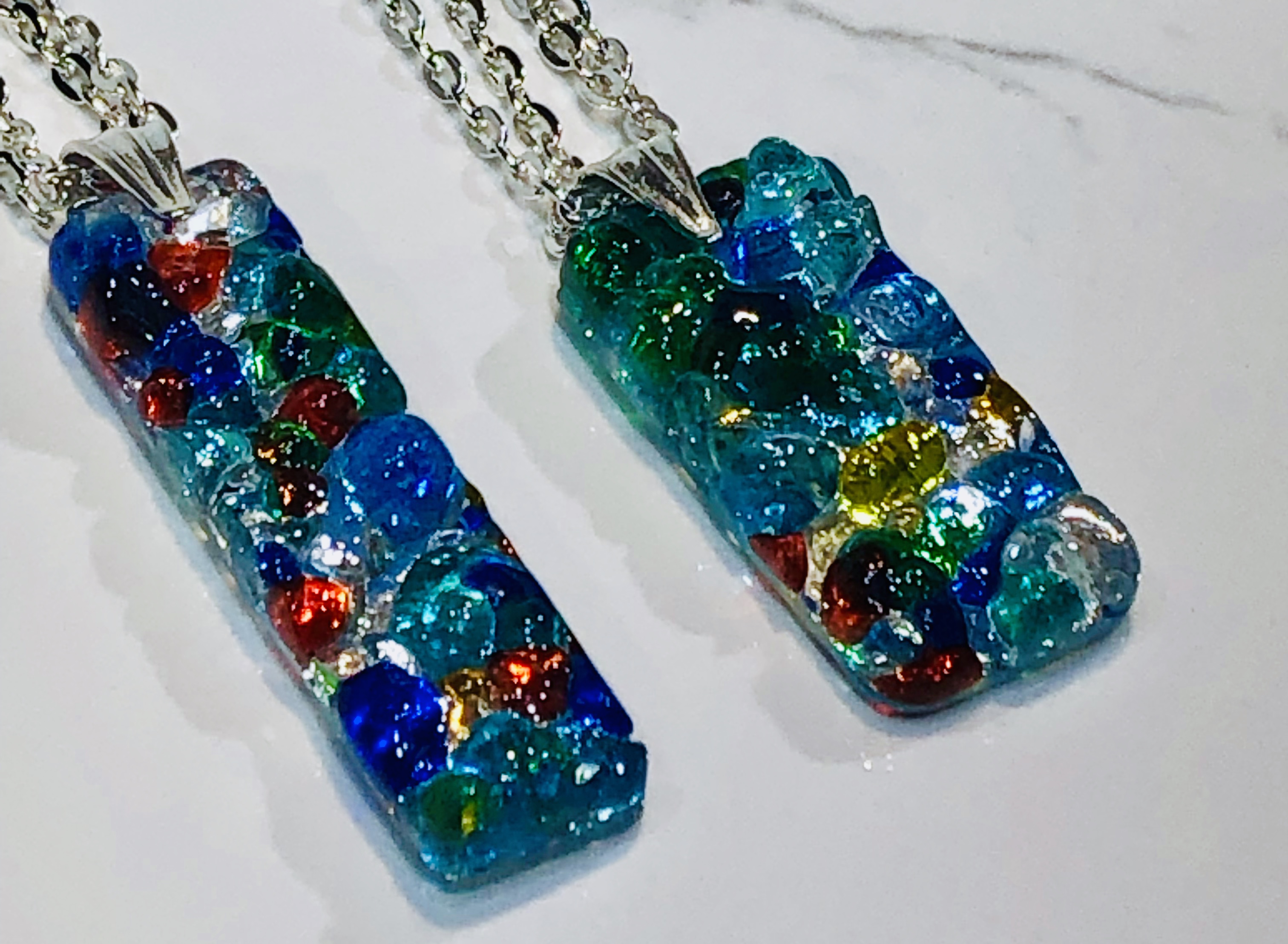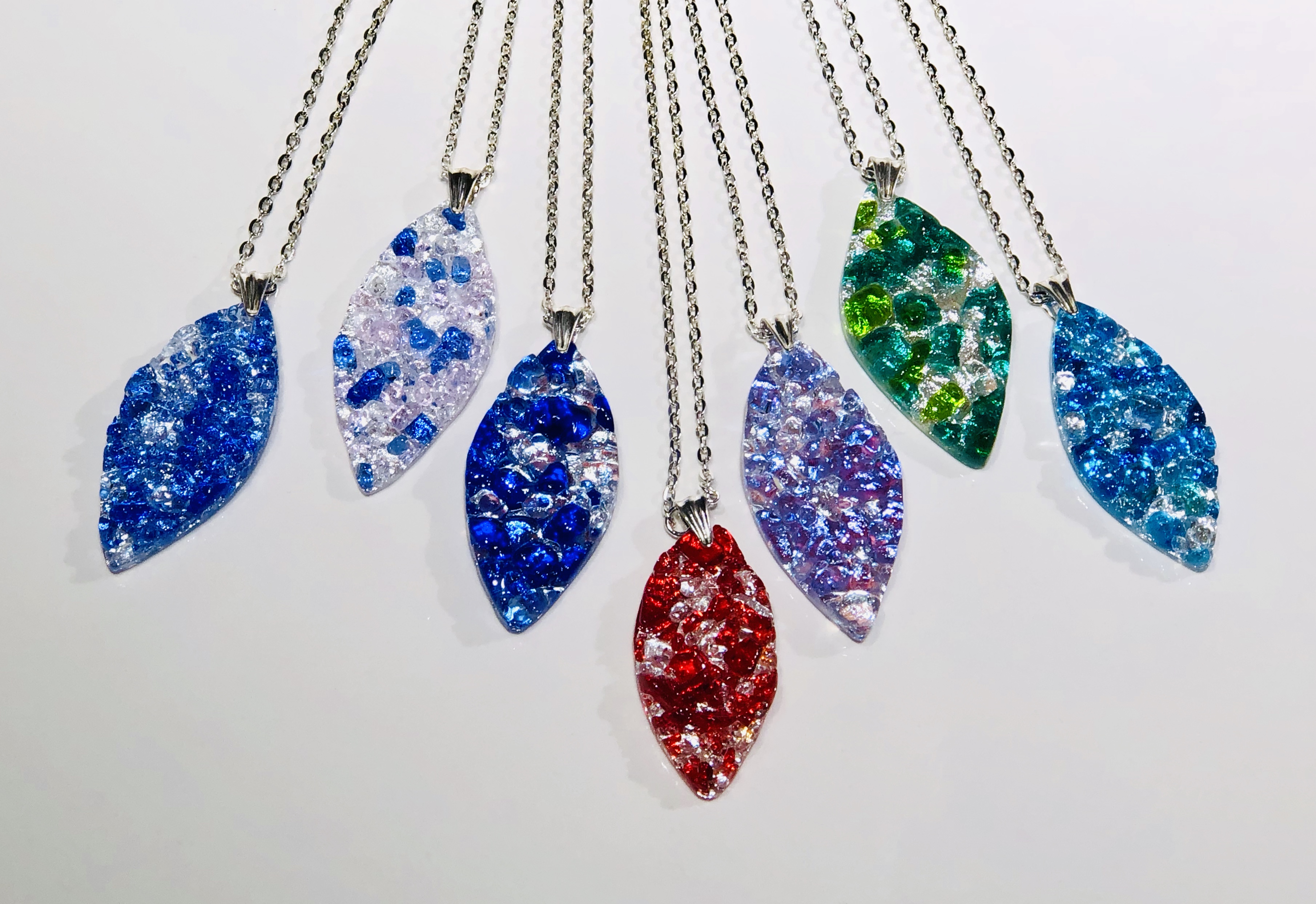 Pendants have .925 sterling silver pinch bail and 36″ silver plated chain – double up the chain for 18″ length.
