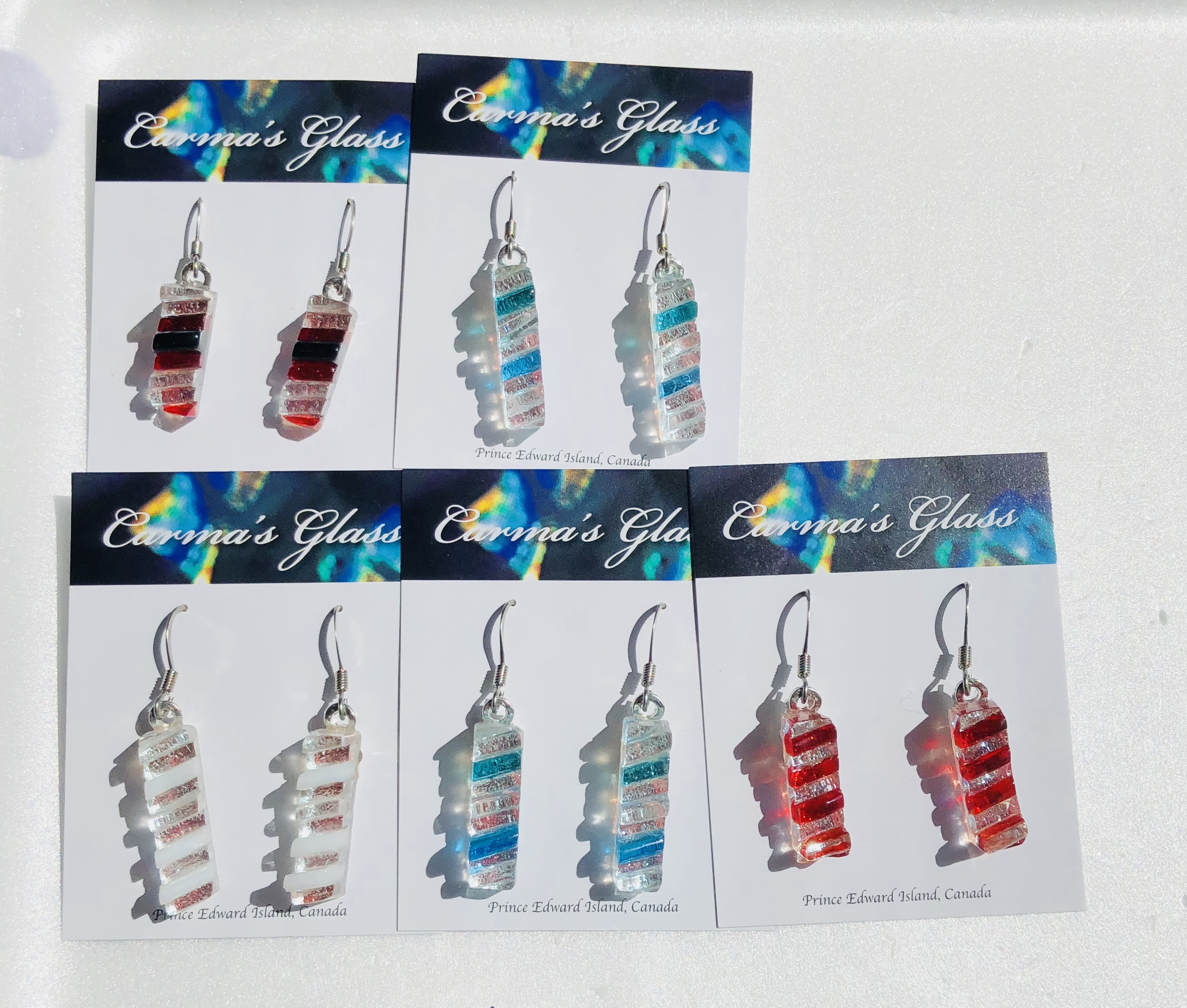 Earrings with silver plated bails and hypoallergenic surgical steel.